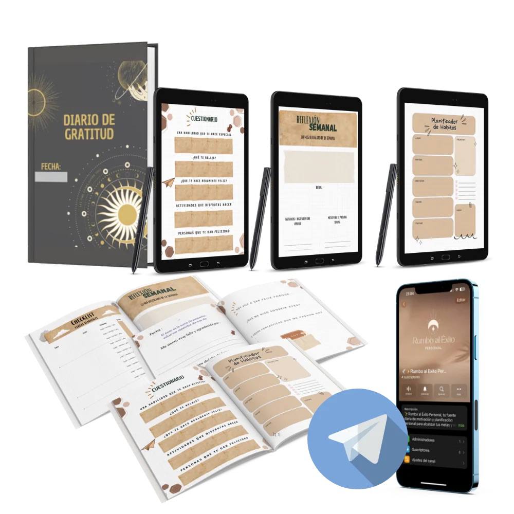 Recibirás el Diario de Gratitud más 5 bonos exclusivos: Diario de Manifestación, ebook Cultiva una Mente Positiva, ebook El Poder de la Gratitud, Tarjetas de Afirmación y acceso a la Comunidad en Telegram.